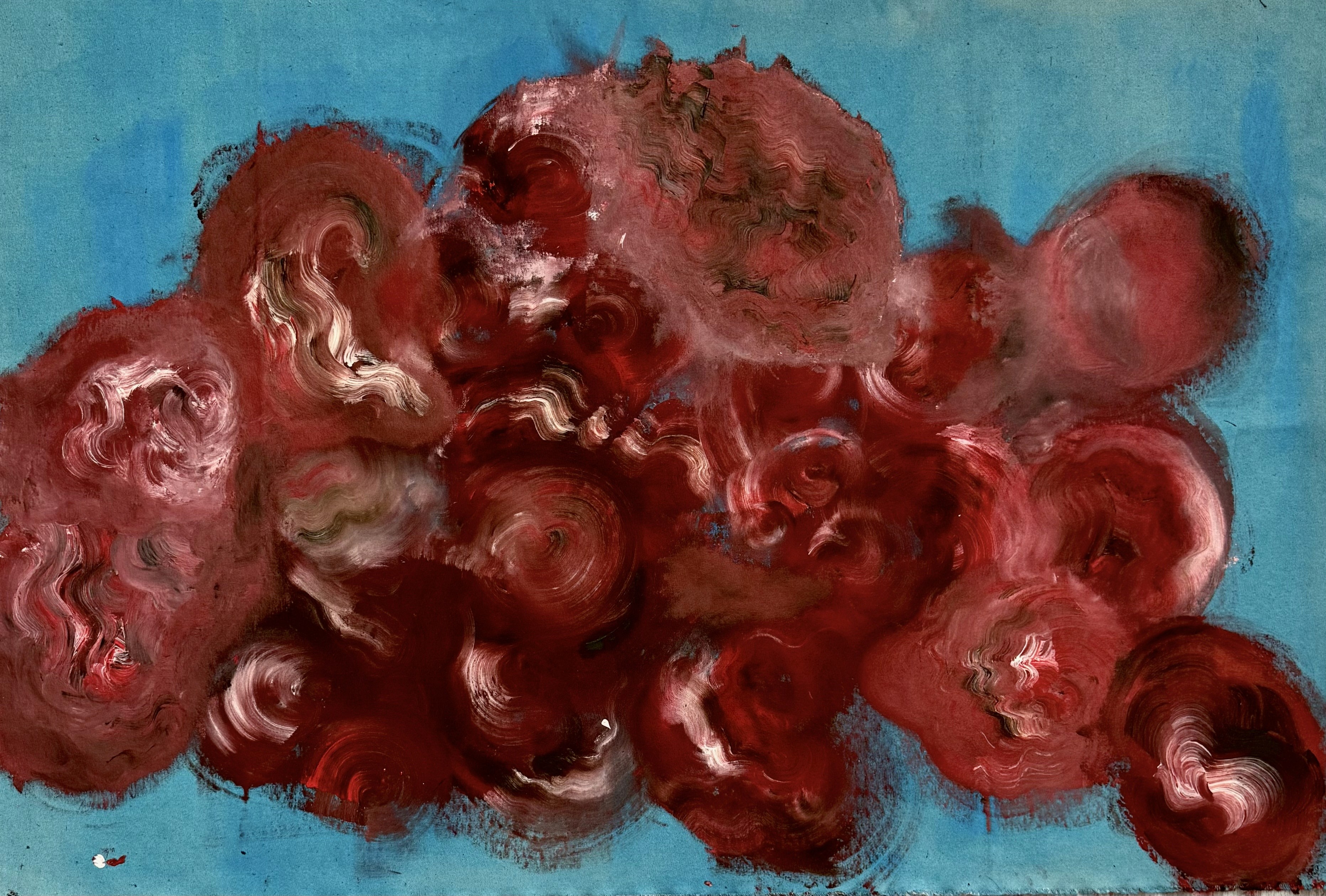 my practice explores the intuitive relationship between process, material, and paint, grounded in ongoing transformation. through gestural abstraction and layered surfaces, the work embraces spontaneity and imperfection, allowing the act of making to remain visible and palpable. painting unfolds as a responsive process shaped by instinct and intention. the works exist in a state of becoming—immersive spaces that invite reflection. engaging a dialogue between inner and external experience, they reveal moments of vulnerability, authenticity, and quiet beauty within the complexities of being human.